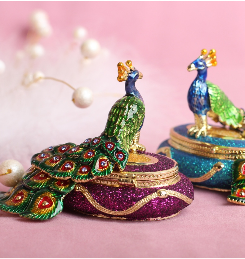 Gold Enamel Scenic Souvenir Crafts Peacock Jewelry Box Home Gifts Network Red Ins Wind Small Ornaments